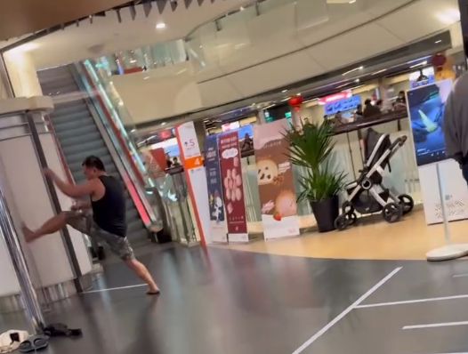 影/是在練醉拳?新竹巨城赤腳男上演「武打戲」 瘋狂踹門嘶吼嚇壞逛街民眾