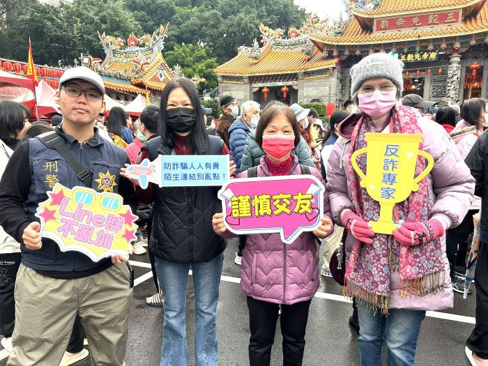 土城分局表示,春節期間各類宗教及民俗活動頻繁,警方將持續落實交通疏導及治安維護工作,同時結合各項勤務時機加強預防犯罪宣導,讓市民朋友在歡度佳節之際,也能安心、安全迎接新的一年。