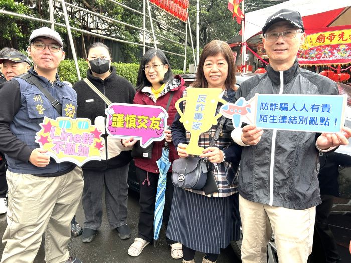 此外,土城分局亦把握現場人潮聚集時機,由員警向民眾進行防詐騙小知識宣導,提醒常見詐騙手法及防範要點,呼籲民眾接獲可疑來電或訊息時務必提高警覺、冷靜查證,並可撥打165反詐騙專線諮詢,強化自我保護意識,共同守護財產安全。