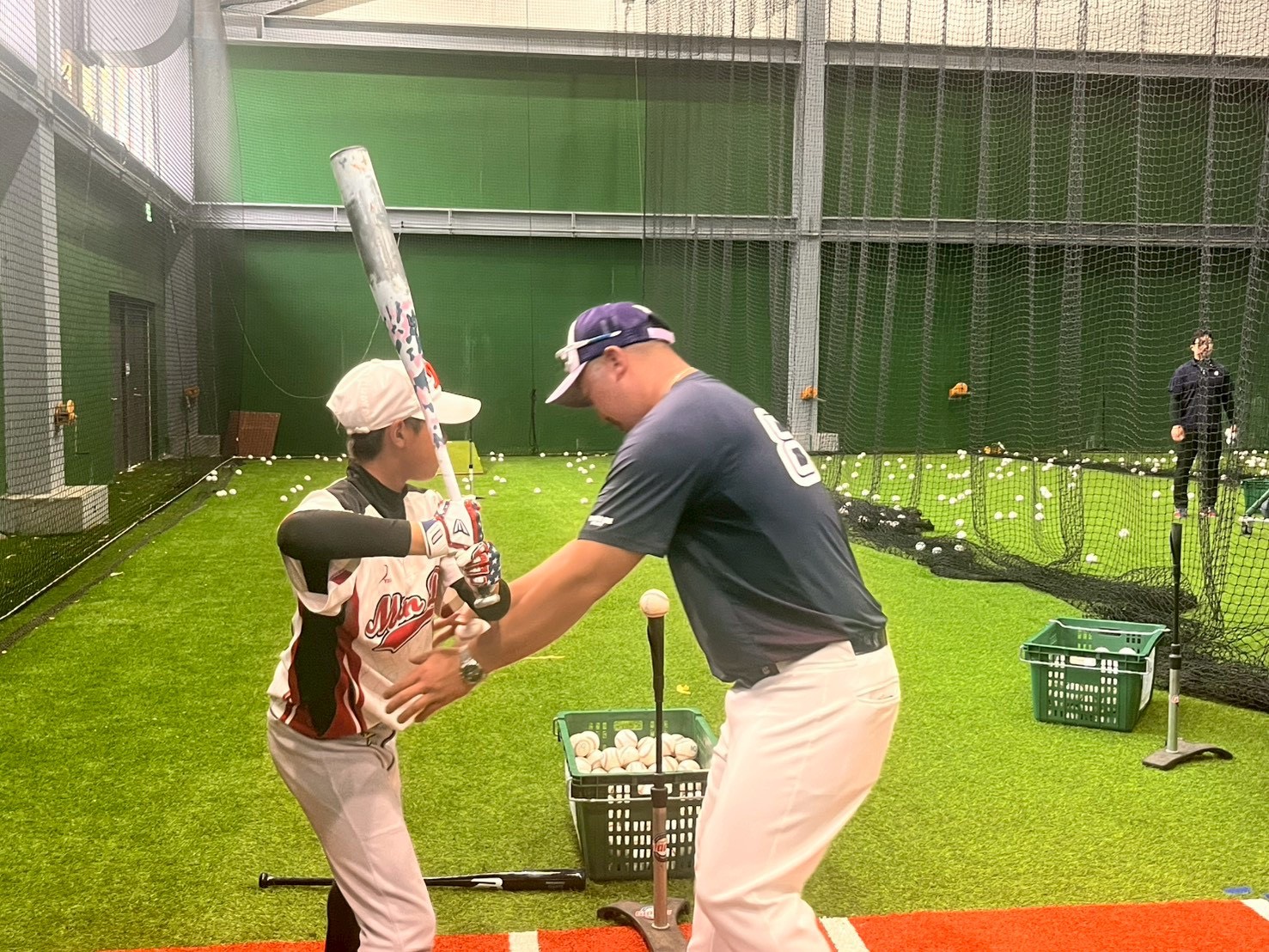 ▲樂天巨人隊李柄奎教練指導民德國中選手打擊技巧。(體育局 提供)
