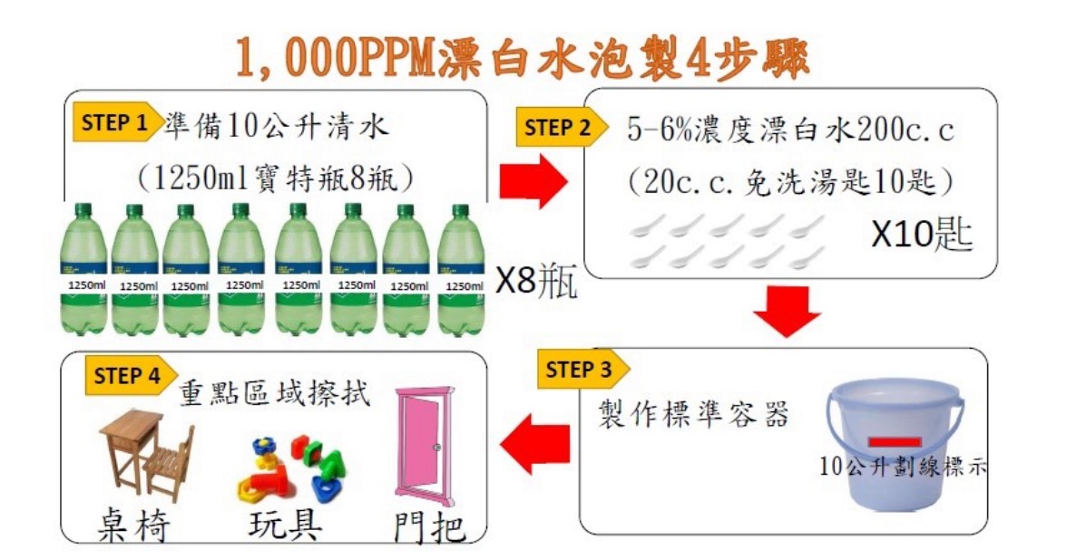 衛生局也提醒,預防腸病毒應從日常做起,家長應教導孩子正確洗手五步驟「濕、搓、沖、捧、擦」,並把握洗手五時機,包括進食前、接觸幼兒前、如廁後、擤鼻涕後及看病前後。同時,學校及幼托(育)機構亦應加強環境清消,針對門把、桌椅、玩具及室內遊戲設施等常接觸物品,定期以1,000 PPM漂白水消毒(10公升清水+200毫升市售家庭用漂白水),降低傳播風險。