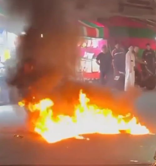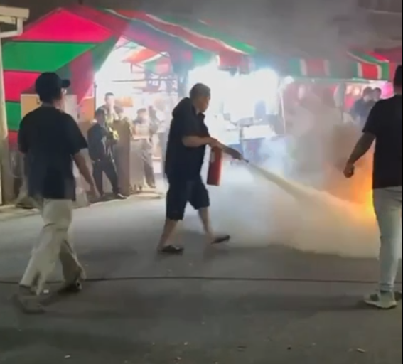 【Lai傳媒、記者爆料網/周庭慶/澎湖報導】澎湖縣西嶼鄉外垵村元宵市集昨(2)日晚間發生縱火案件!1名蘇姓男子用打火機點燃裝進寶特瓶汽油並丟在路面,熊熊火光讓現場民眾受到驚嚇,所幸。附近村民見狀立刻持滅火器撲滅,警方獲報到場將縱火兩人帶回派出所,全案依《刑法》公共危險罪,移送偵辦。