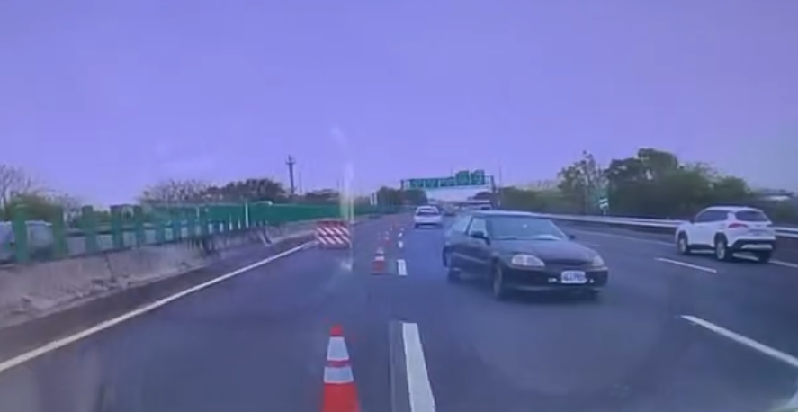 國道3號草屯路段自小客車突失控甩尾打轉360度逆向停在中間車道。翻攝畫面