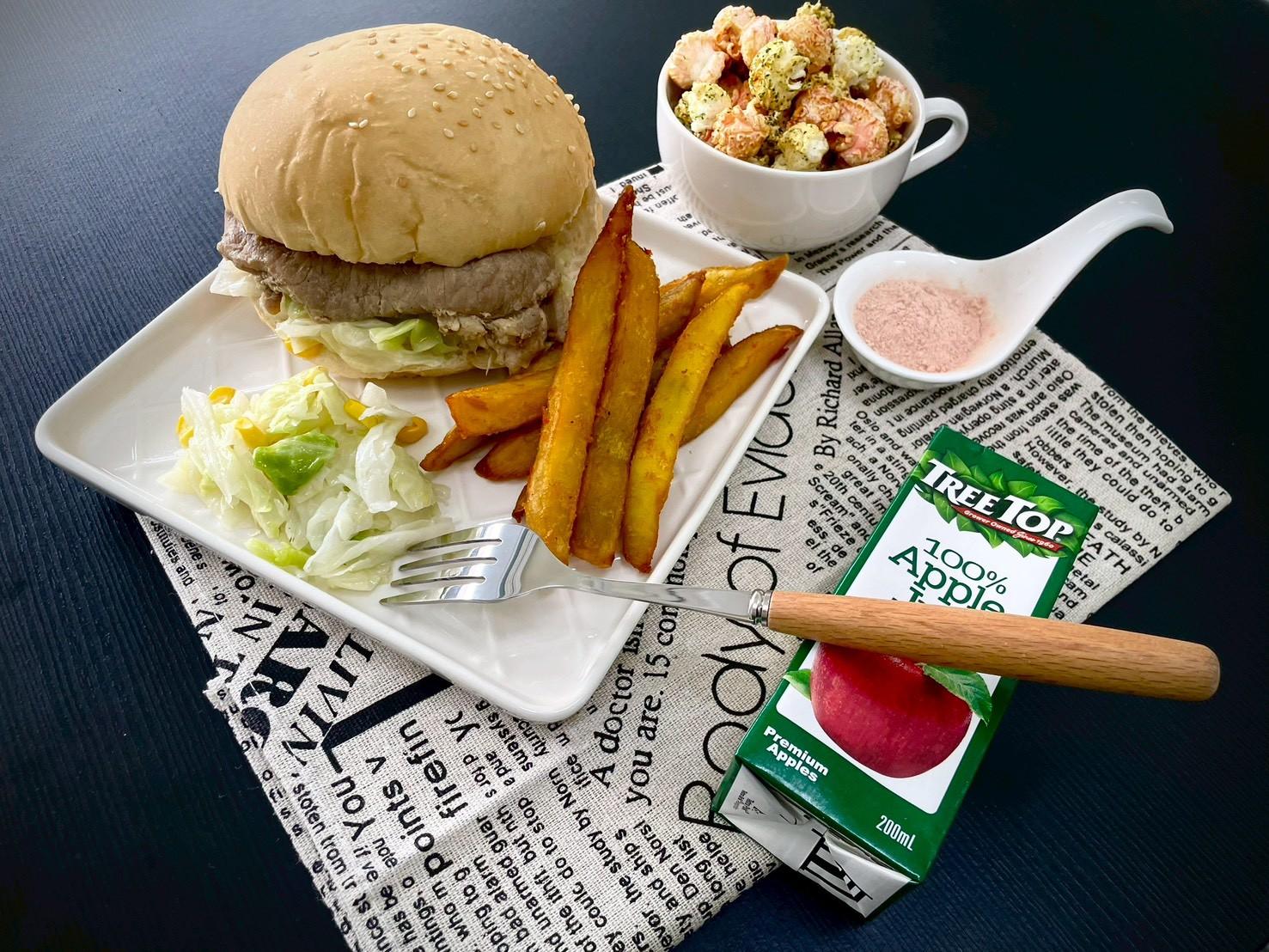 各校亦發揮創意巧思,讓節慶餐點更具特色。永華國小透過學生票選推出人氣菜單,包括夏威夷披薩、燒烤雞翅與青花椰菜,並搭配黑糖珍珠奶作為甜點,展現豐富層次;仁德國小則打造派對風格餐點,供應豬排漢堡、玉米花椰菜與海苔爆米花,並選用在地新化地瓜製作香甜薯條,讓學生在輕鬆愉快的氛圍中認識在地農產。
