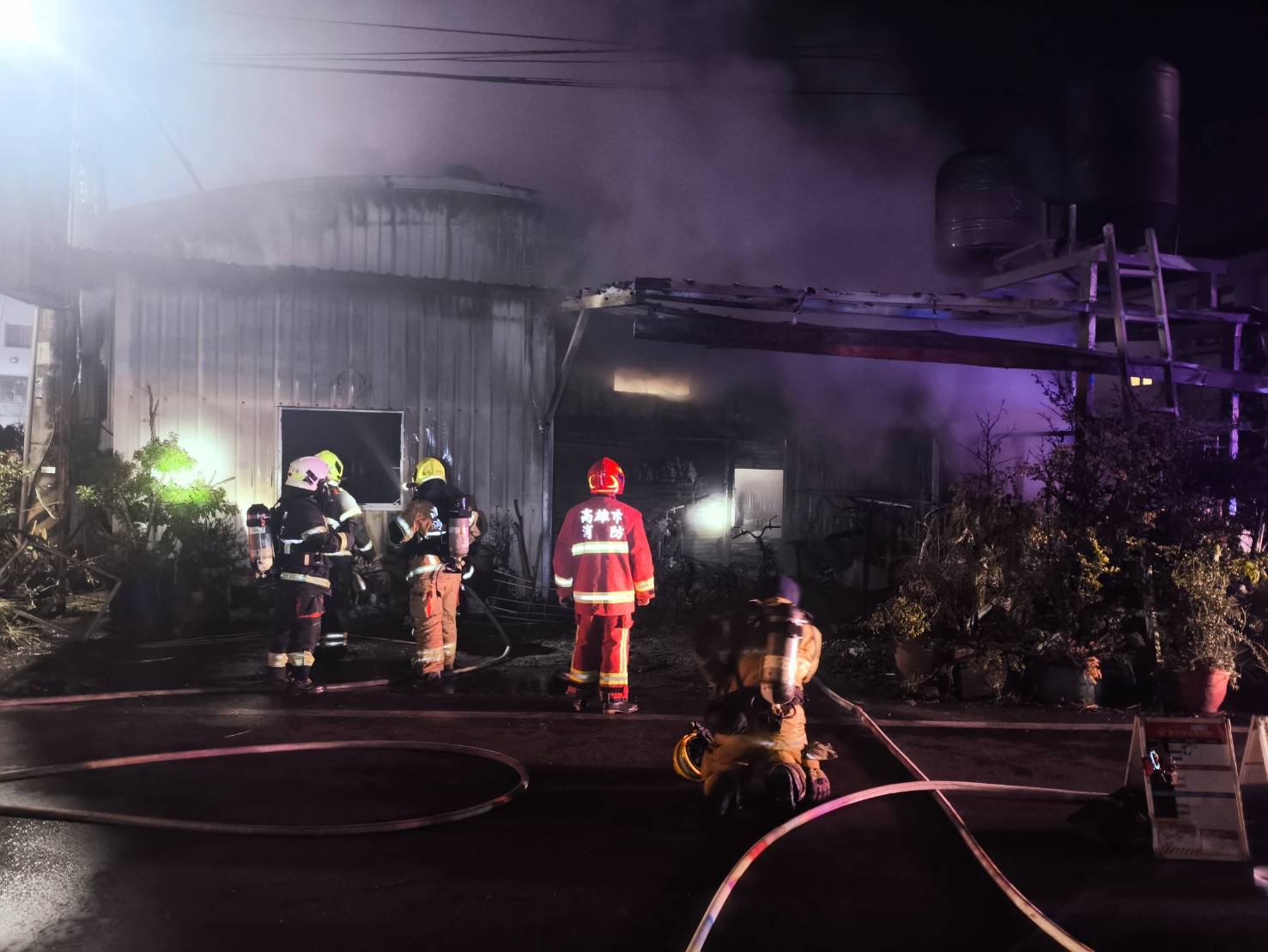 高市消防局表示,現場為1樓高鐵皮廠房,燃燒汽車材料及雜物,火勢在1個小時後撲滅,搜索發現一名民眾(女性、約55歲)明顯死亡未送醫。