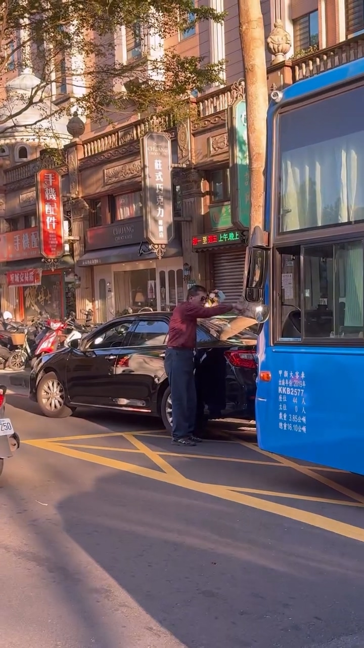 網友在Threads發文指出,14日下午5點多在新北市文化二路一段,看到有轎車占用車道,客運司機按喇叭後駕駛下車嗆聲要客運後退,還說要檢舉客運司機,還說被司機逼車逼成這樣,司機也反嗆要他快點開走。