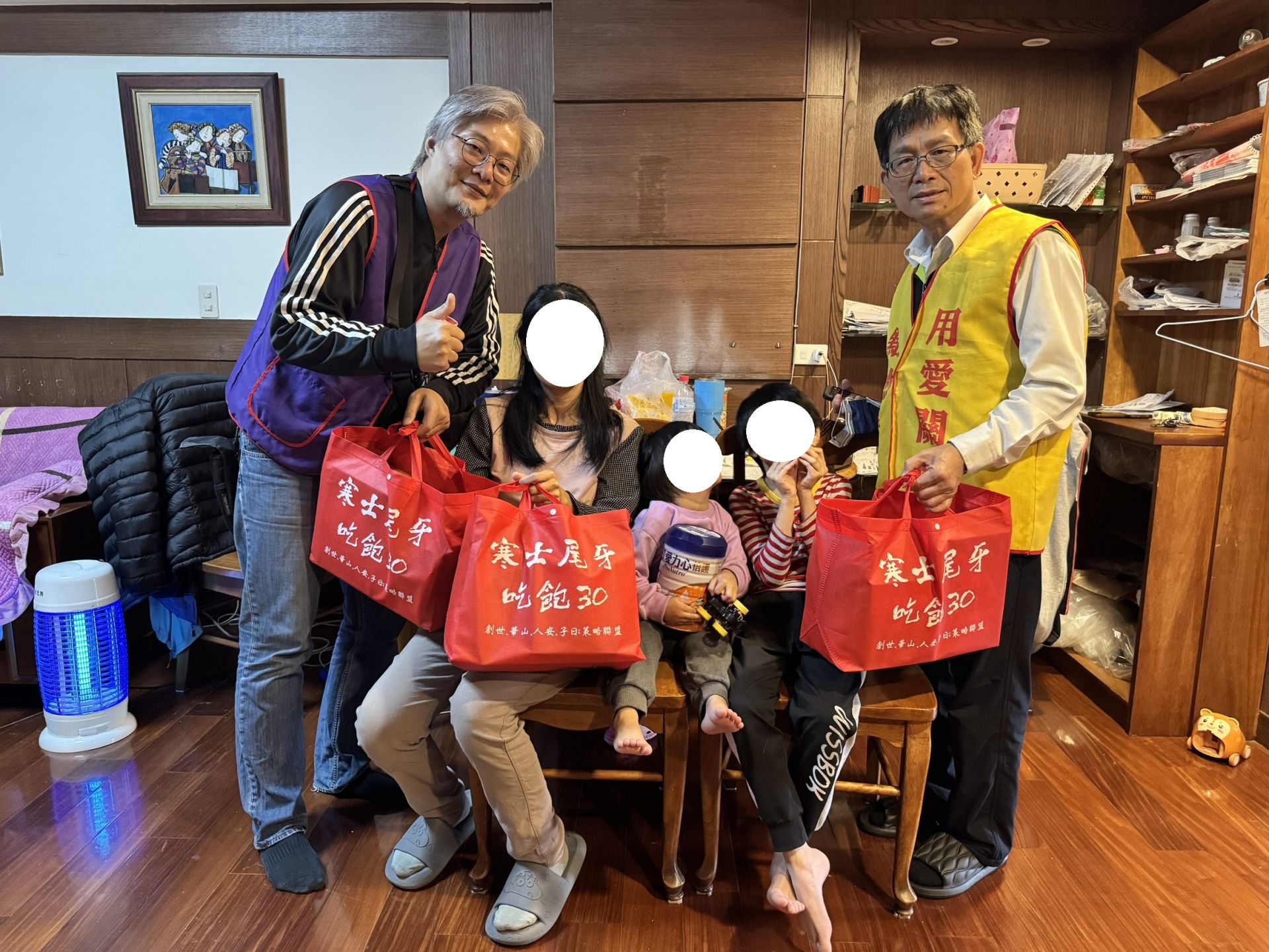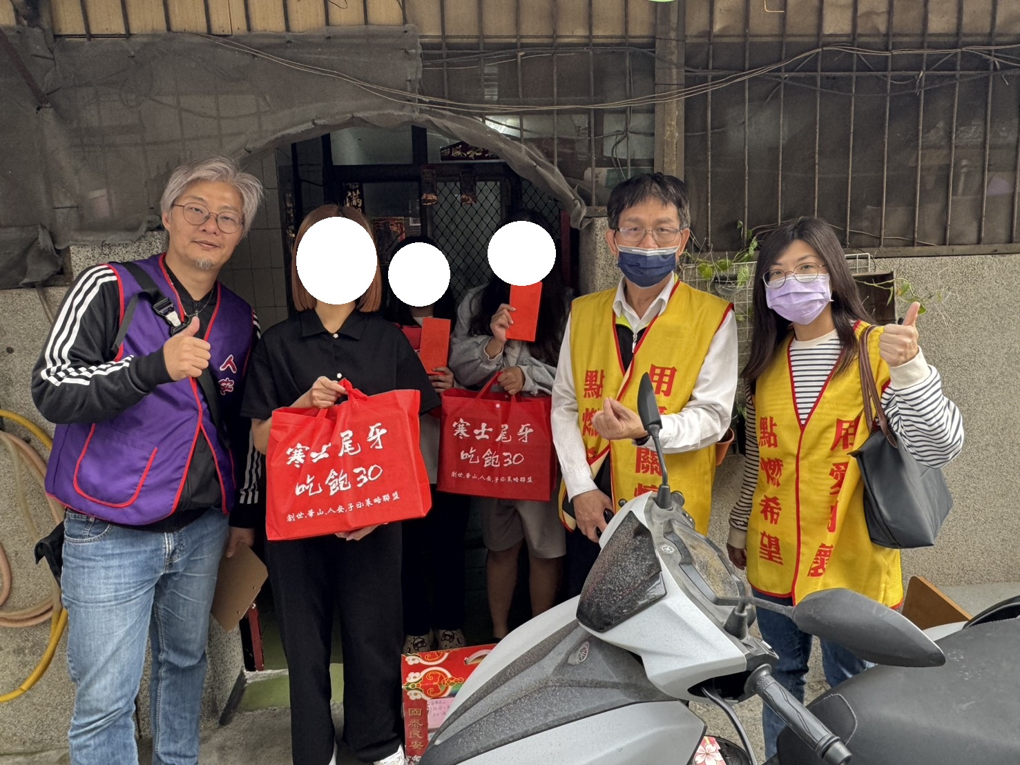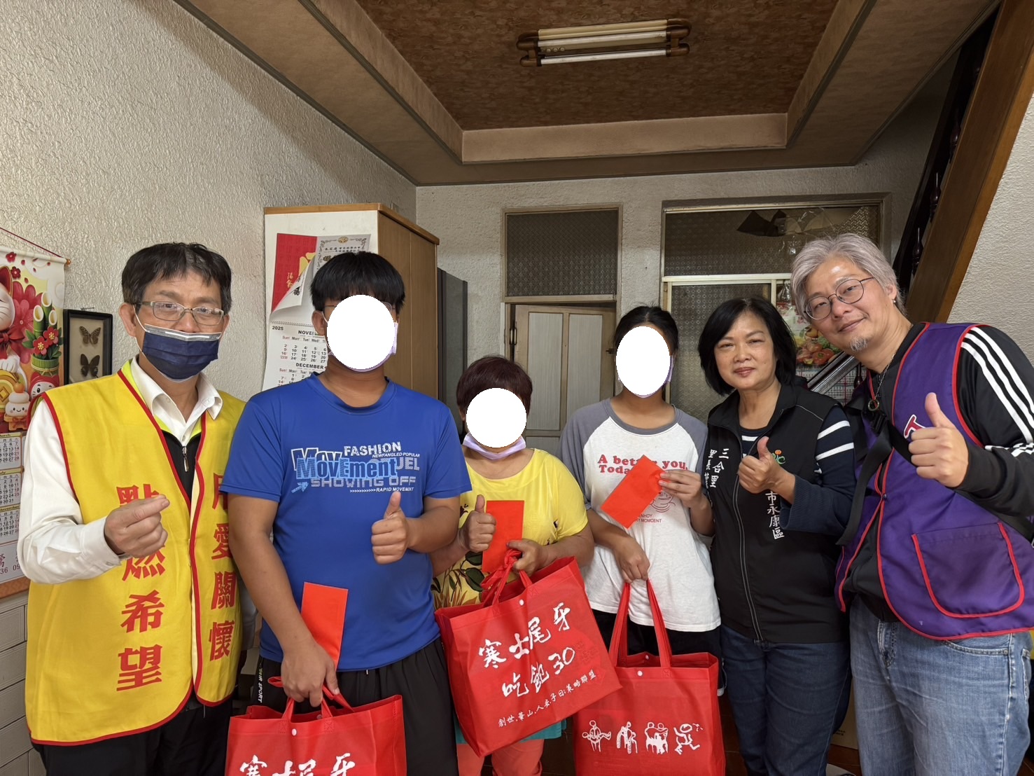 立春當天,永康平安站實際走訪8戶弱勢家庭,共送出23份年菜與應急紅包,關懷對象包含身心障礙、獨自扶養三名孩子的單親爸爸,以及以家庭代工撐起生活、照顧兩名智能障礙孩子的清寒家庭等,每一戶都是一段為生活努力撐持的真實故事。