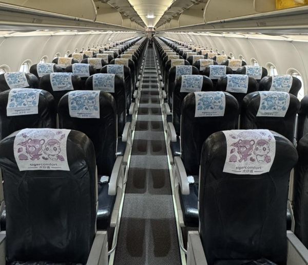 圖說1、2:台灣虎航機上蜜柑站長與虎將超萌頭枕巾。
