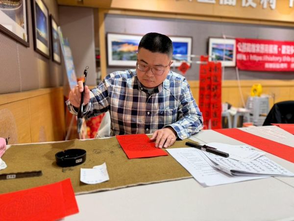 該次春聯贈送活動特別邀請中華民國書學會南區分會書法老師蒞臨現場,提供公益揮毫服務,民眾可自行指定春聯內容,再由老師親筆書寫新春祝福。手寫春聯深受民眾喜愛,索取踴躍、迅速送罄,不少民眾表示,在洽公之餘能獲得充滿年味的手寫春聯,充分感受到監理所貼心且富有人情味的服務。
