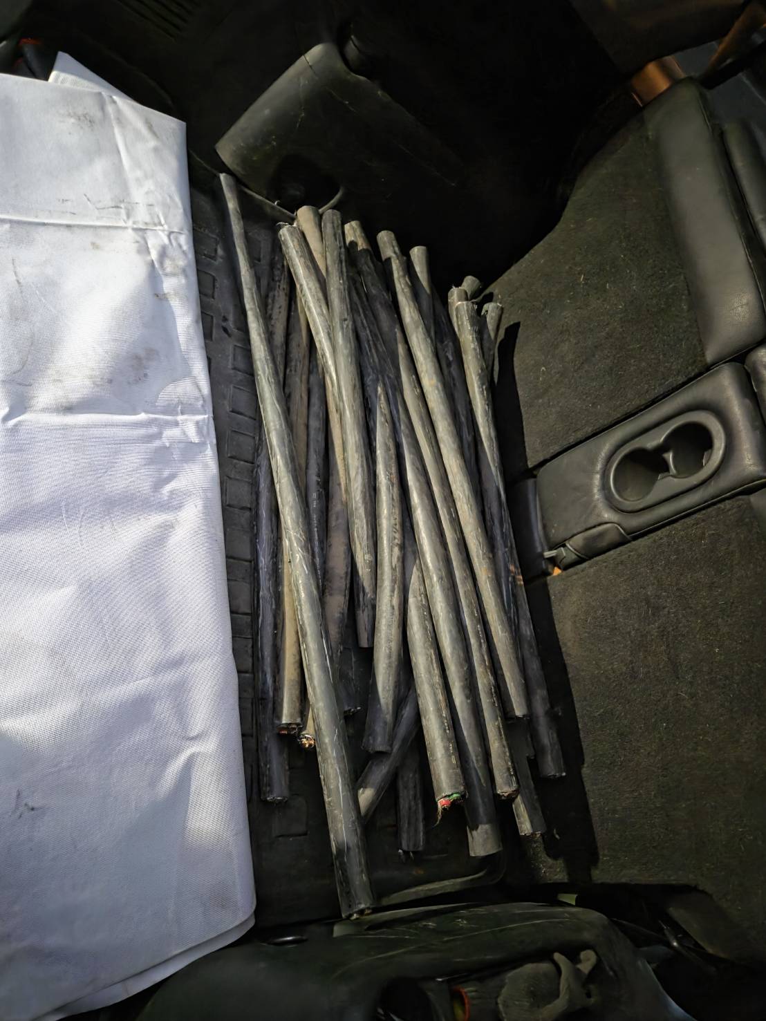 鐵路警察局花蓮分局查獲偷剪鐵路隧道號誌電纜線的犯罪集團起出的贓物。翻攝畫面