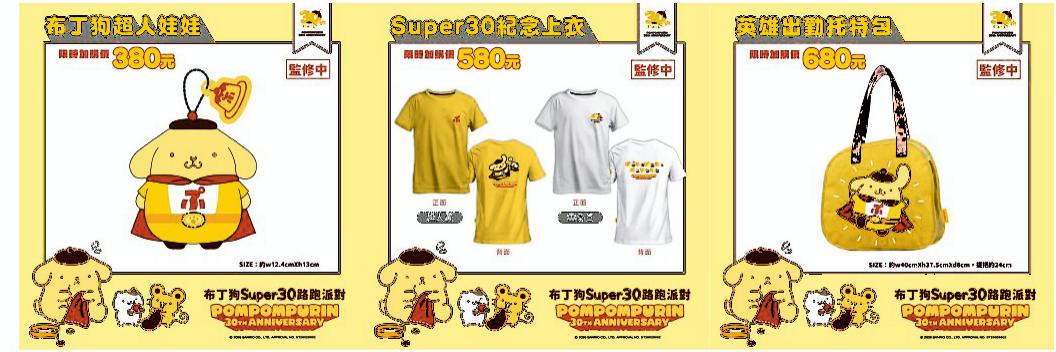 報名即享加購商品資格,可額外選購Super30紀念上衣(超人黃/雲朵白雙色)、布丁狗超人娃娃及英雄出勤托特包。此系列商品同樣採用超級英雄布丁狗造型,僅開放參賽者加購,是收藏控不可錯過的完整收藏機會!