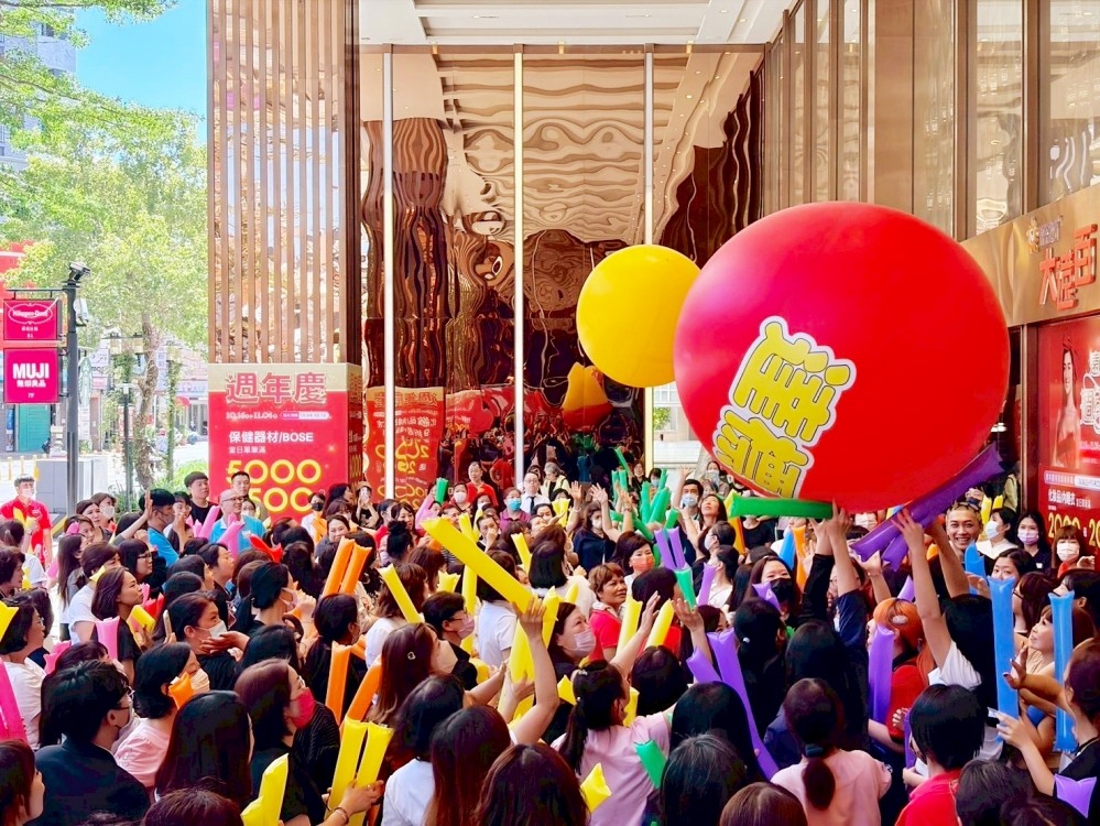 ▲新竹大遠百週年慶預購開跑!新竹大遠百盛大舉辦週年慶造勢大會,現場約500人共同推向超%球,大家一起高喊10億業績勢在必得!(圖/新竹大遠百提供)